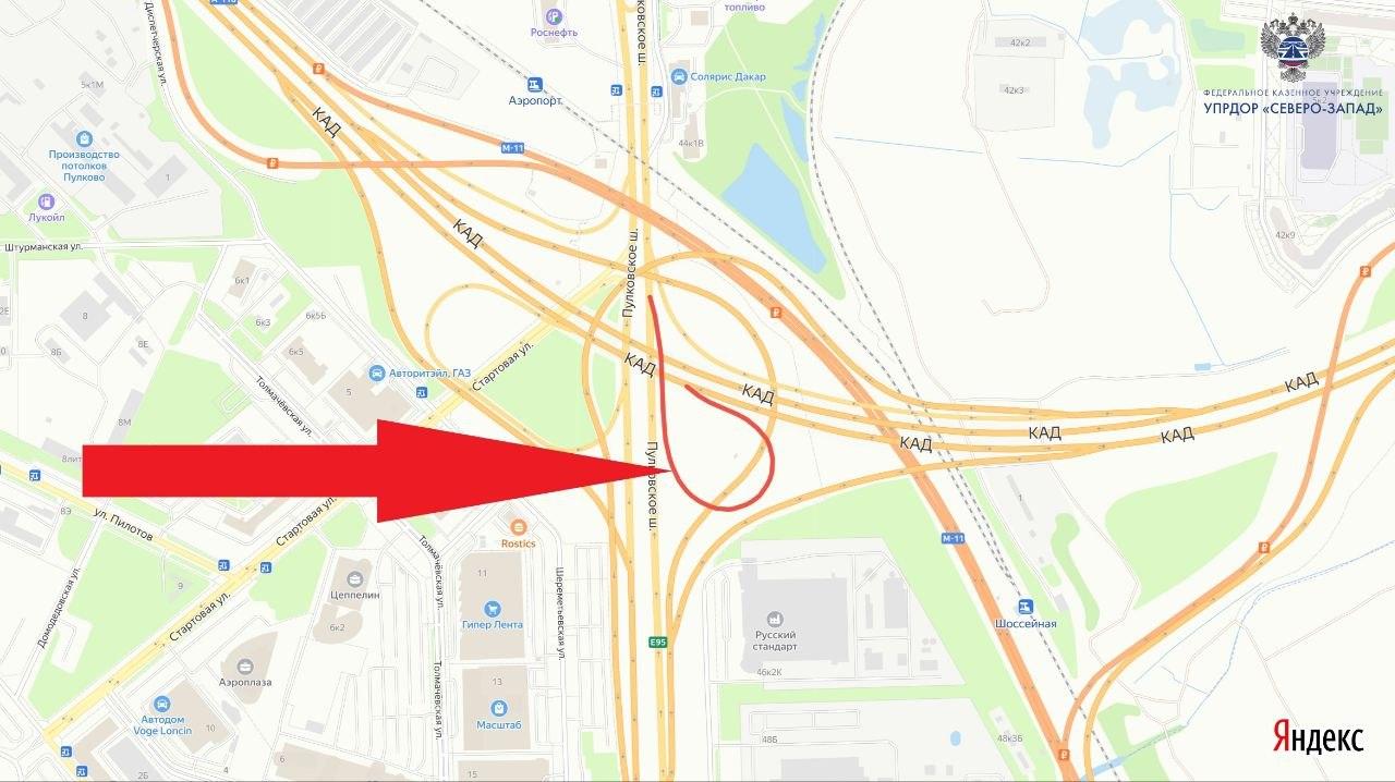 На развязке КАД закроют съезды на Пулковское шоссе