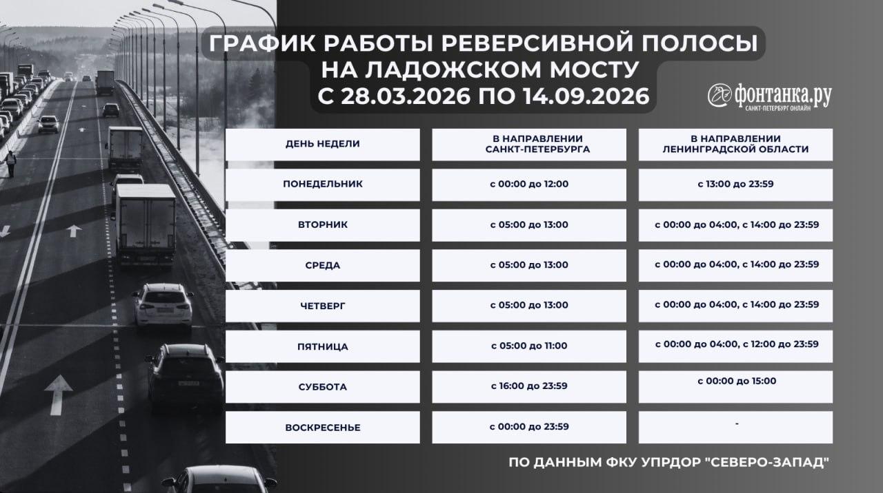 Реверс на Ладожском мосту: новый график с 28 марта