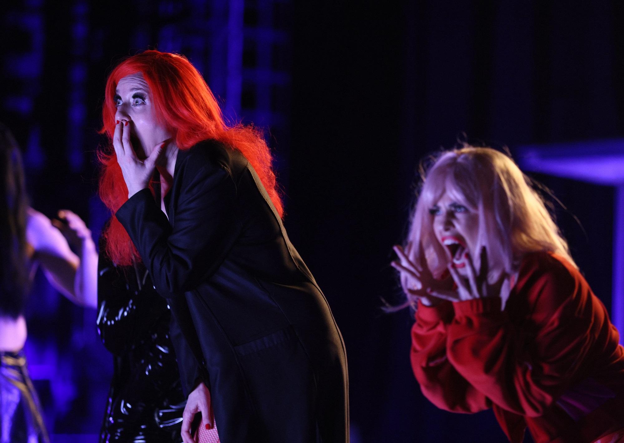 Женские образы представлены как «ночные бабочки» в блестящих платьях на высоких каблуках, которые могут превращаться в ангелов, демонов или фурий.
