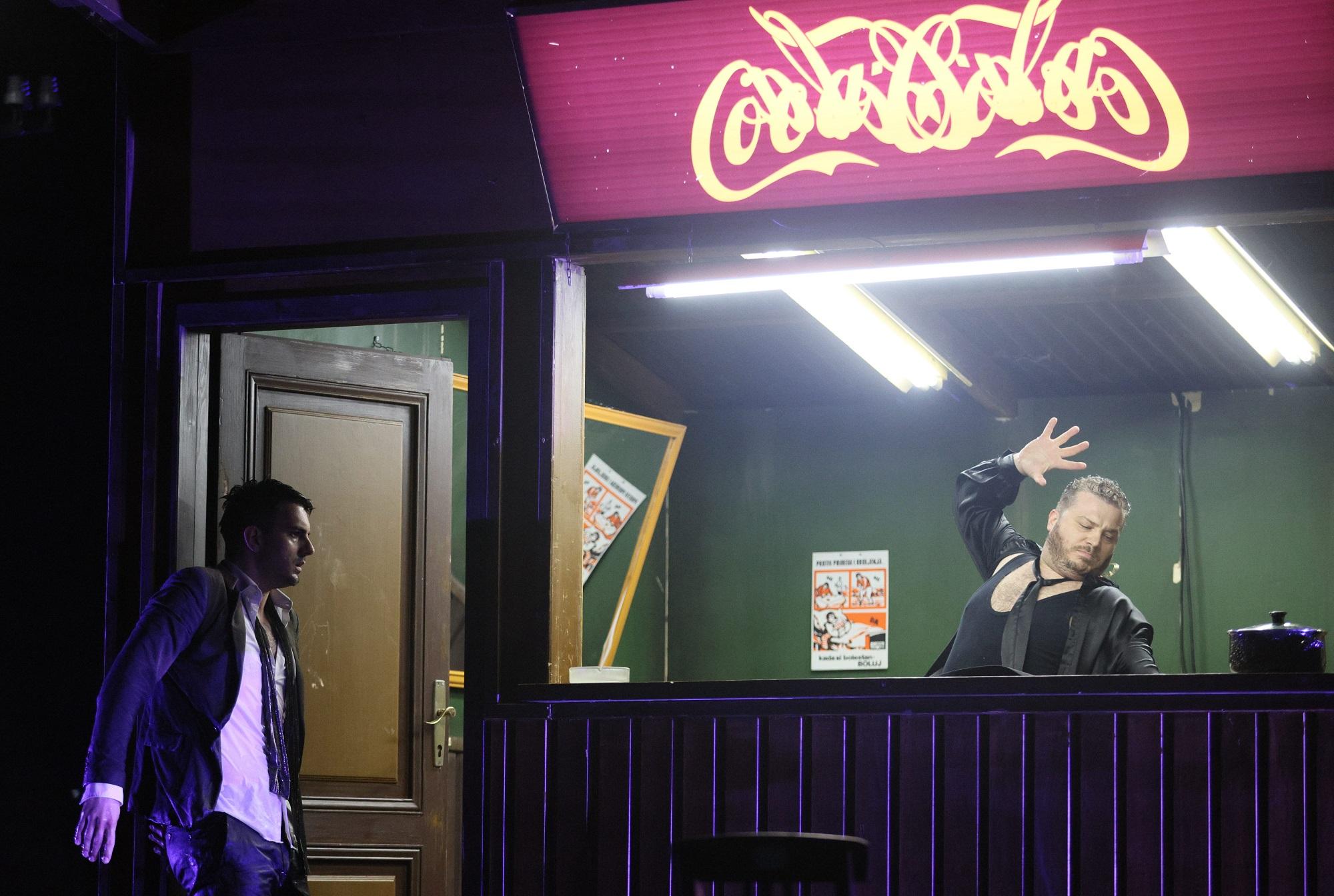 Действие разворачивается в мрачной атмосфере ночного Белграда, с неоновыми вывесками кинотеатра «Звезда» и киоска шавермы. Сценография Александра Денича создает образ городского дна, с мусорными свалками и зловещими тупиками.
