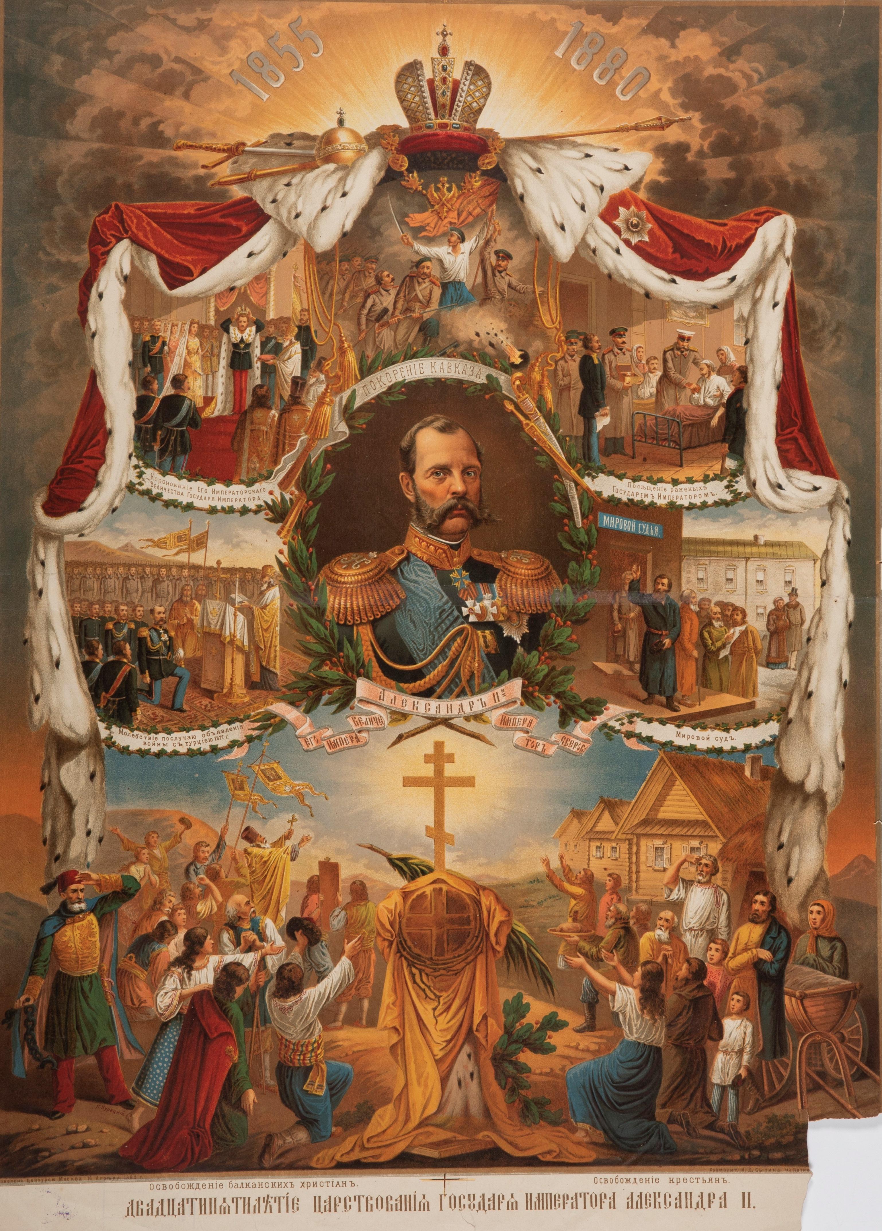 Александр II взошел на престол после кончины Николая I, унаследовав Крымскую войну, которая ослабила международное положение России и вызвала экономические трудности. Период его правления отмечен «великими реформами», включающими: