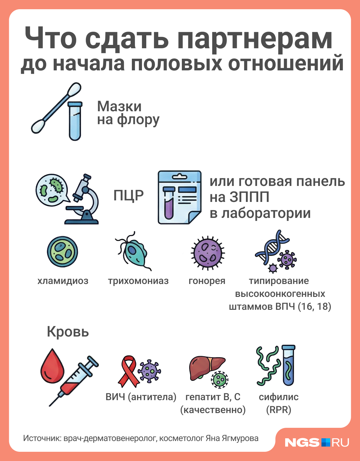Врач-дерматовенеролог Яна Ягмурова рекомендует следующий комплекс обследований: