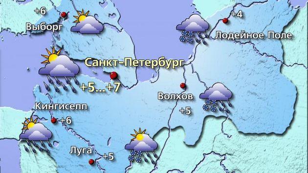 Санкт-Петербург в воскресенье, 28 апреля, находится под влиянием тыловой части циклона, который уходит из центра Европейской России на северо-восток. В регионе прогнозируется облачная с прояснениями погода, местами пройдут небольшие осадки, преимущественно в виде дождя. Более интенсивные осадки ожидаются на востоке Ленинградской области. Температура воздуха в городе составит +5…+7 градусов, в Ленинградской области — от +2 до +7. Ветер северо-западный, 5–10 м/с, порывистый. Атмосферное давление растёт и достигнет 760 мм ртутного столба, что близко к норме.