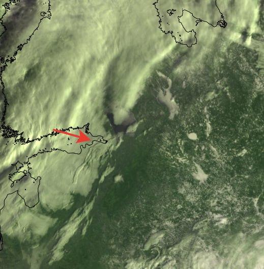 Атмосферный фронт движется к Санкт-Петербургу с запада, о чём 18 марта сообщил в своём телеграм-канале главный синоптик города Александр Колесов, сопроводив информацию снимком из космоса.