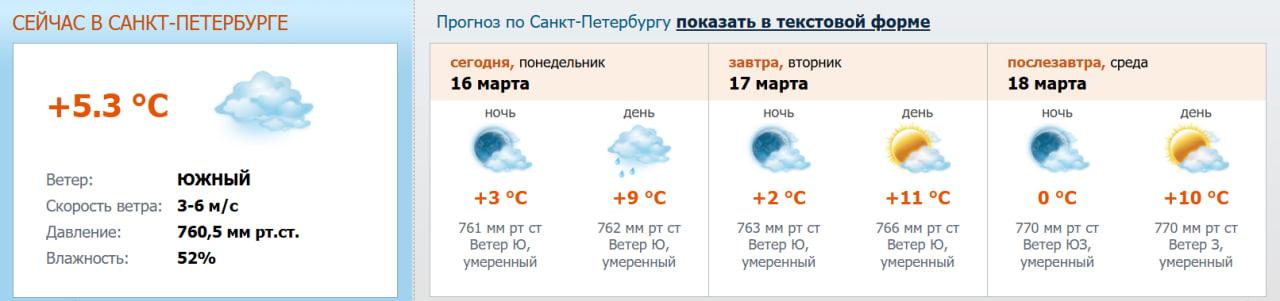 Будет ли дождь в Петербурге? Прогноз на 16 марта