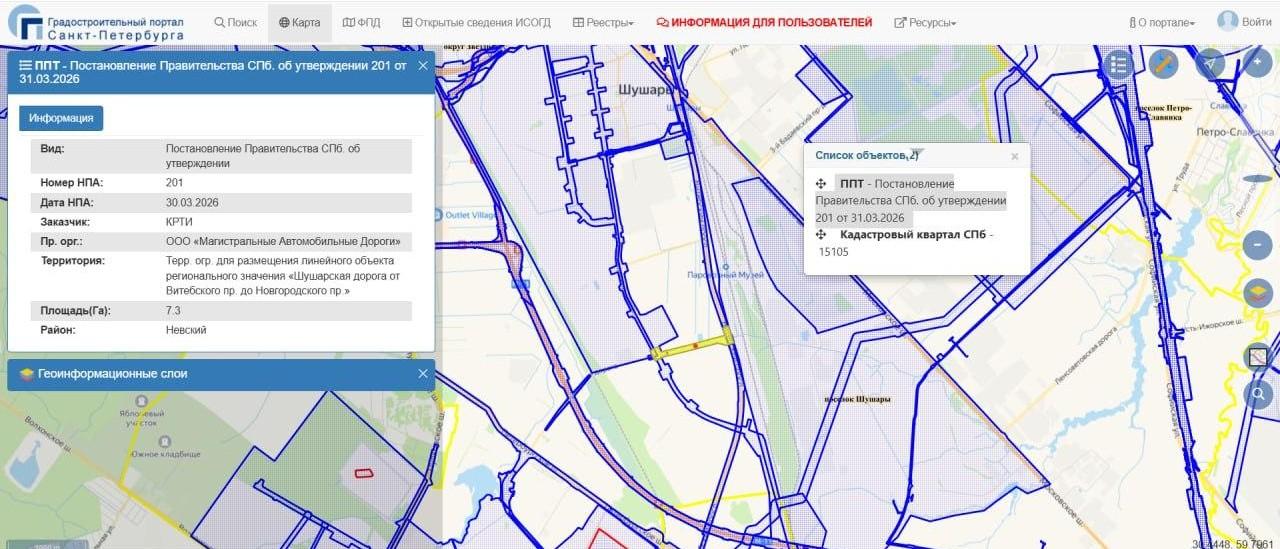 Дирекция транспортного строительства Санкт-Петербурга ищет исполнителя для разработки проекта участка Шушарской дороги. Документация по открытому конкурсу была размещена на портале госзакупок 8 апреля.