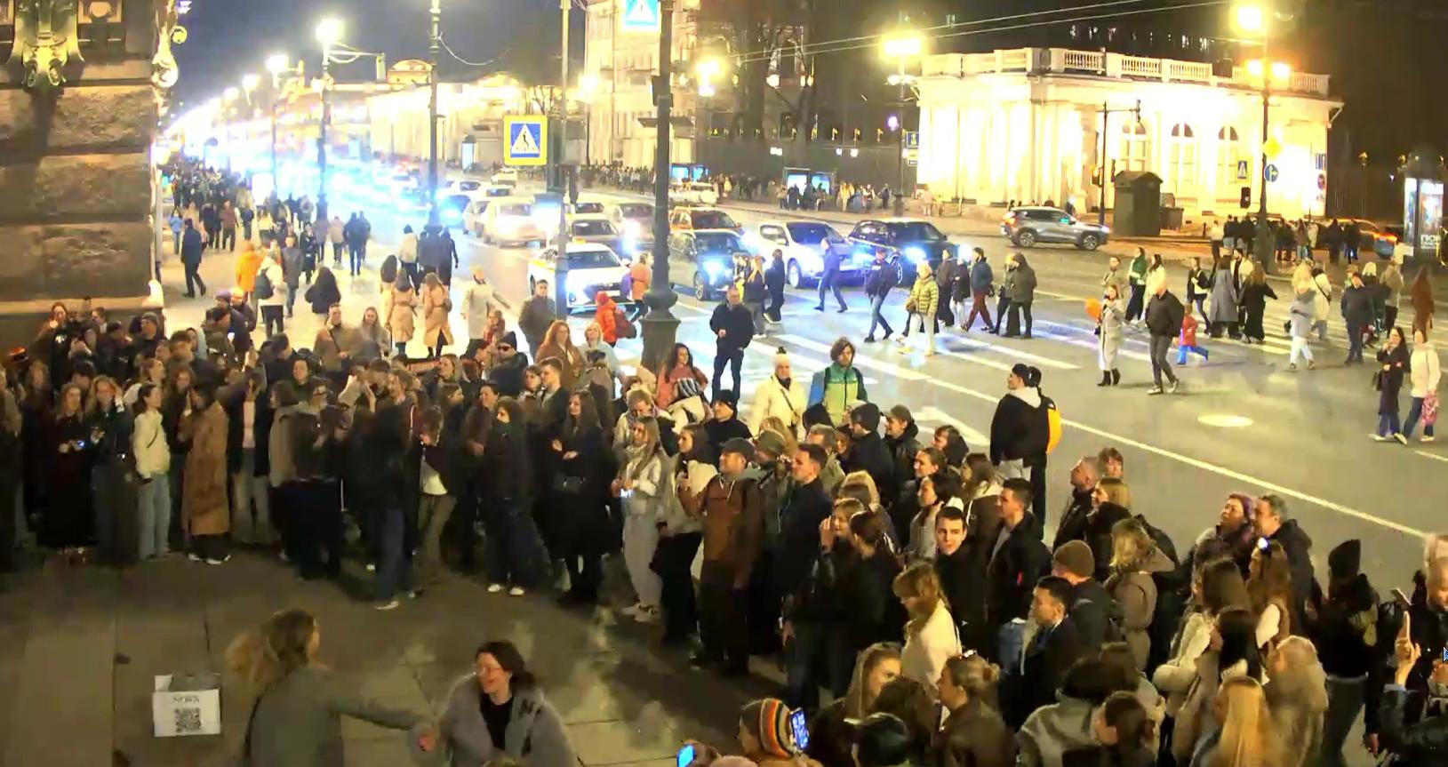 Жители города активно наслаждались теплом. На Невском проспекте десятки человек собрались вокруг уличных музыкантов, танцевали и гуляли.