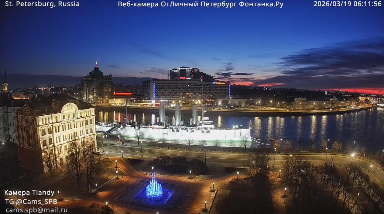 Ранним утром 19 марта в Санкт-Петербурге температура воздуха опустилась до 0 градусов. Небо почти безоблачное, на восточном горизонте виднеется заря. Однако такая погода продержится недолго.