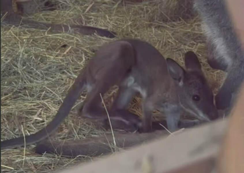 «Только спустя примерно шесть месяцев маленький кенгуру начинает осторожно выглядывать наружу, ненадолго выбираться из своего укрытия и возвращаться обратно», — пояснили сотрудники зоопарка.