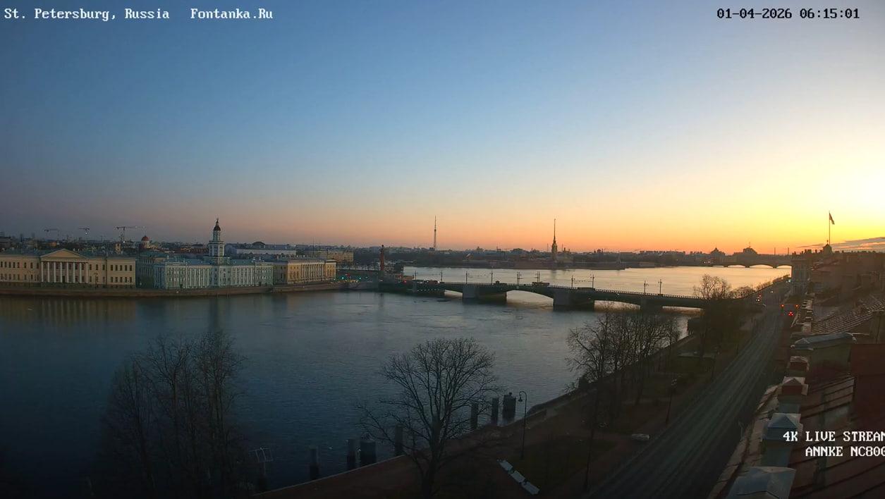 Утро в Санкт-Петербурге 1 апреля ясное. На рассвете, в шесть часов утра, воздух прогрелся до +3 градусов Цельсия.