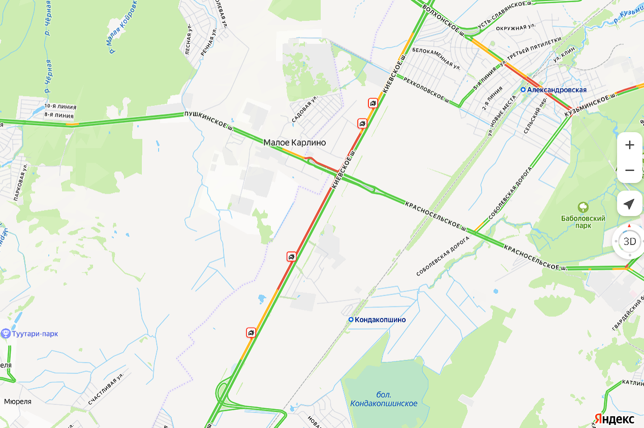 По данным сервиса «Яндекс.Пробки», к 17:30 движение на Киевском шоссе в районе аварии оставалось затруднённым, протяженность затора составляла более 5 километров.