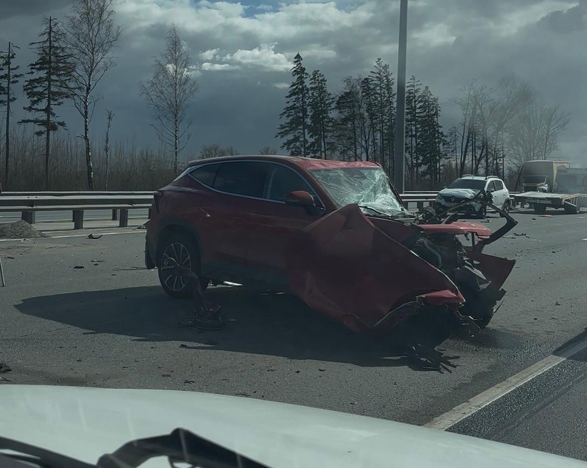 По информации УГИБДД Петербурга и Ленинградской области, в 11:10 у дома 147А 43-летний водитель автомобиля Jetour, двигавшийся по левой полосе, наехал на стоящий трактор. Трактор проводил уборку разделительной полосы. После удара Jetour отбросило в правый ряд, где он столкнулся с Renault Logan.