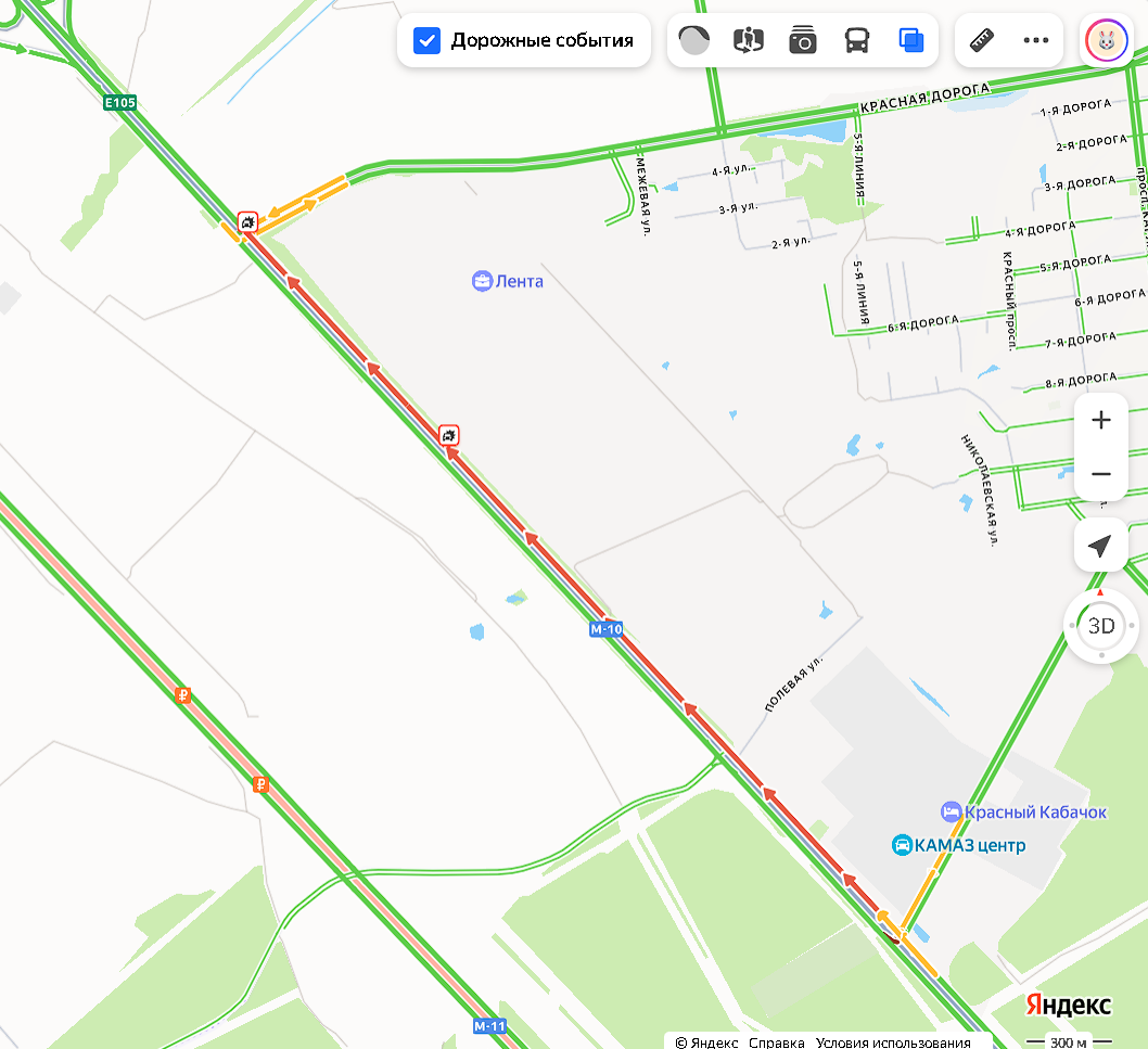 Многокилометровая пробка на трассе М-10, возникшая из-за дорожного происшествия.