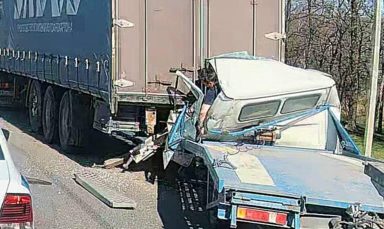 Участниками столкновения стали грузовая «ГАЗель» с прицепом и фура. Оба транспортных средства двигались в одном направлении. Сила удара была такова, что кабина «ГАЗели» получила серьезные повреждения.
