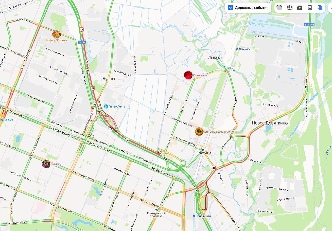 Две аварии на КАД у Бугров заблокировали движение