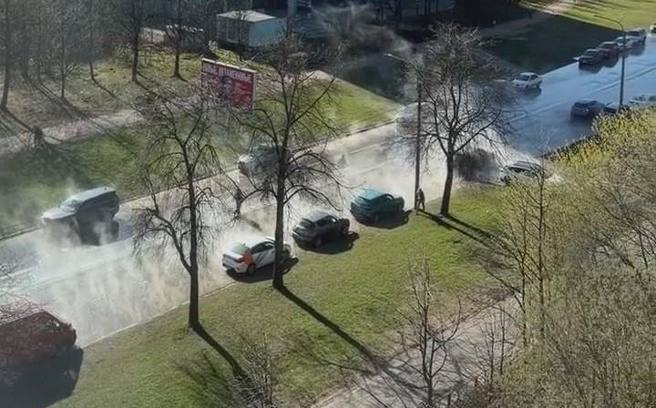 Несколько припаркованных автомобилей оказались в зоне разлива горячей воды