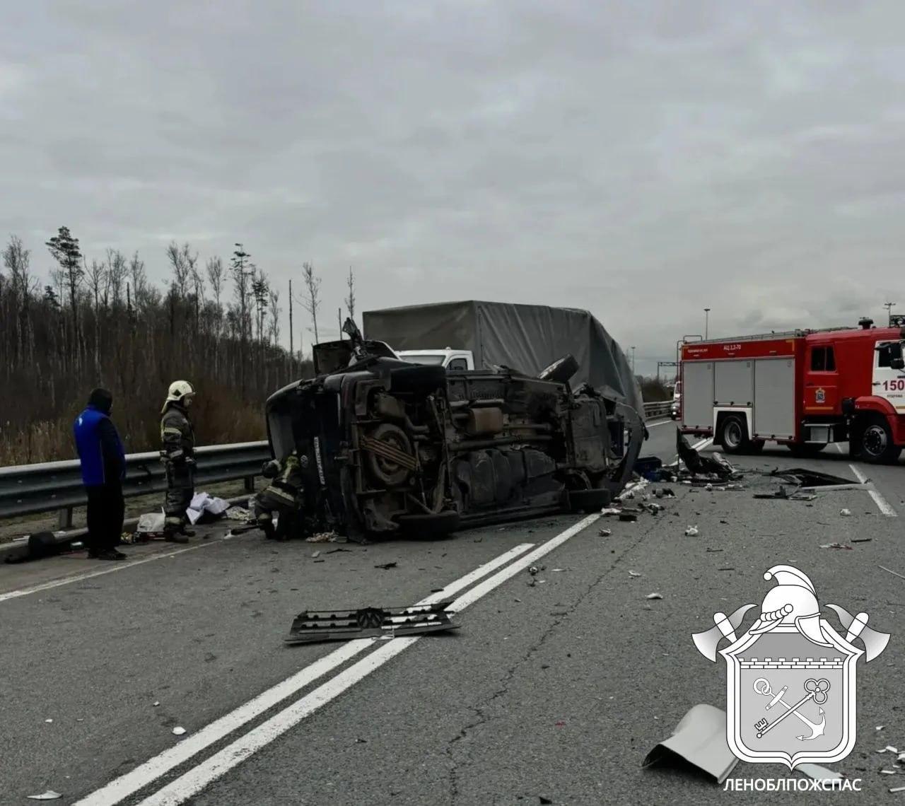 В ГКУ «Леноблпожспас» сообщили, что один из пассажиров легкового автомобиля погиб на месте. Тело извлекли из искорёженного салона. Водитель и второй пассажир Volkswagen получили травмы, оба нуждаются в госпитализации. По предварительным данным, один из пострадавших — несовершеннолетний, его возраст уточняется.
