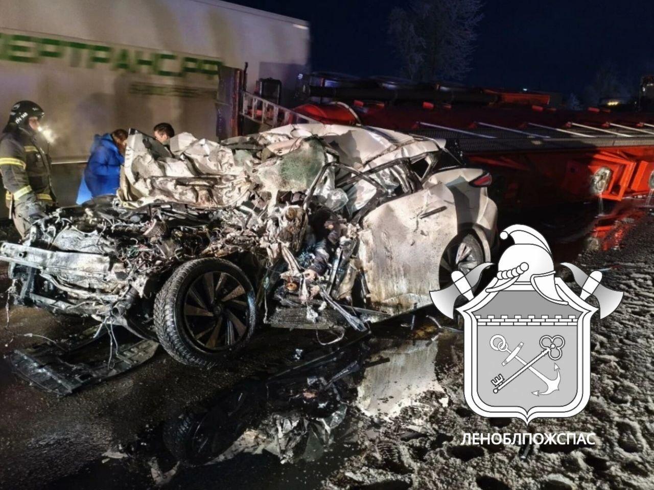 Смертельное ДТП с бензовозом под Волховом: иномарка превратилась в металлолом