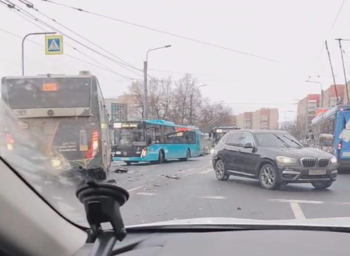 Столкновение автобуса с BMW на проспекте Ветеранов привело к затору