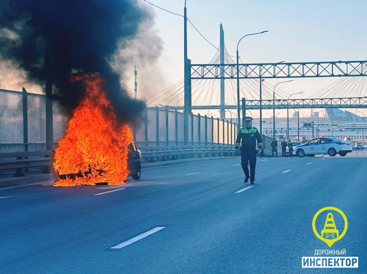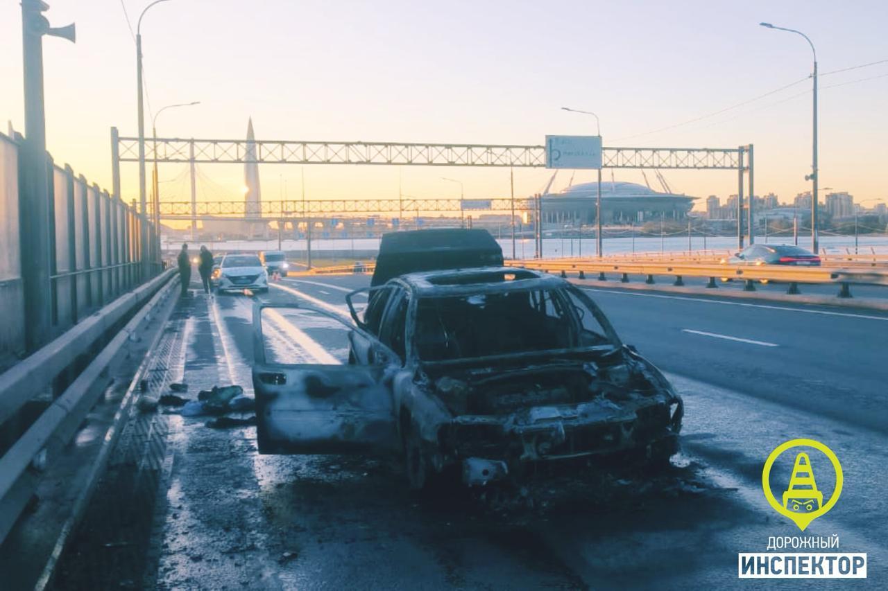 Преследование завершилось на набережной Макарова, где автомобиль загорелся.