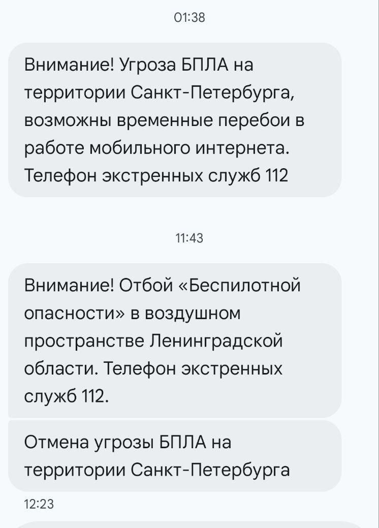 Угроза атаки беспилотных летательных аппаратов, действовавшая с ночи, снята в Санкт-Петербурге и Ленинградской области.