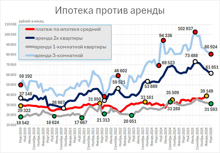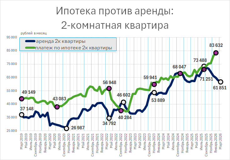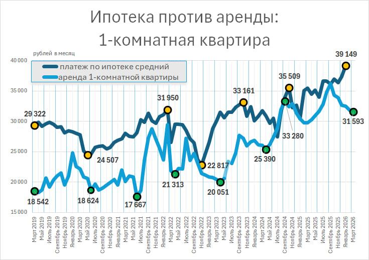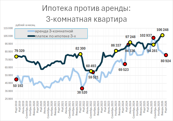 По данным анализа рынка, текущие условия делают ипотеку экономически целесообразной только для приобретения однушек. При рассмотрении вариантов с двумя и более комнатами ежемесячные расходы на собственное жилье оказываются на 20–30 тысяч рублей выше, чем на аренду, с перспективой полного владения лишь через десятилетия.