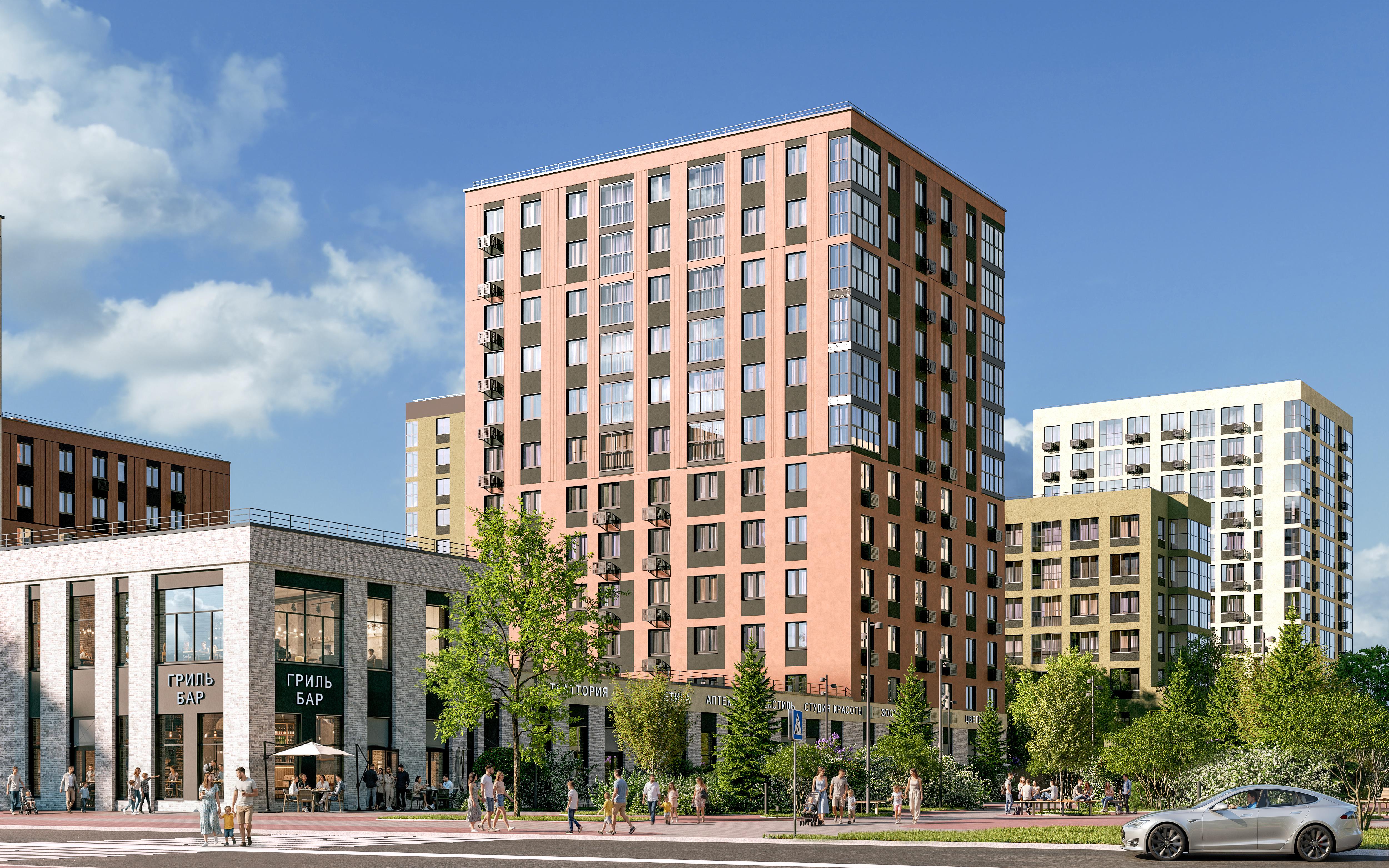 Первый сегмент кластера ориентирован на семейную аудиторию. Вдоль территории с детскими площадками и прогулочными дорожками разместятся: