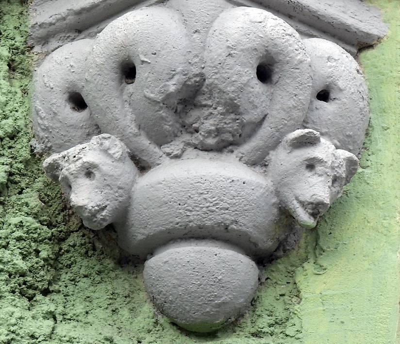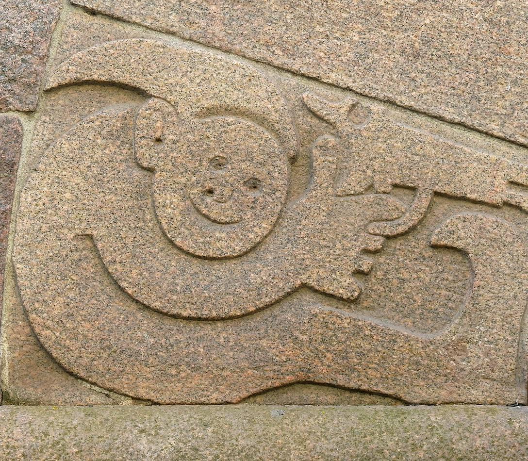 Автор привёл и другие примеры: «Или лохматые змеи, как бы впившиеся зубами в жезл Меркурия — это на доме Сергеевых. Или забавные персонажи — клоуны или гномы, в колпачках с пистолетом и арбалетом, как бы охраняющие один из входов в Доме Лаллукки.»