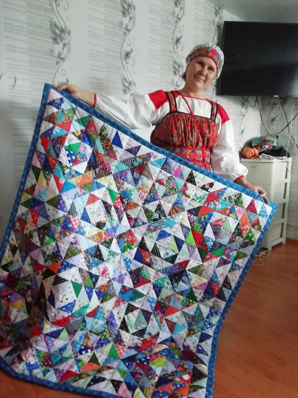 - Галина Прокофьевна, собравшая за 23 года материалы о народных костюмах, демонстрирует свою коллекцию, включая рубаху XVIII века.