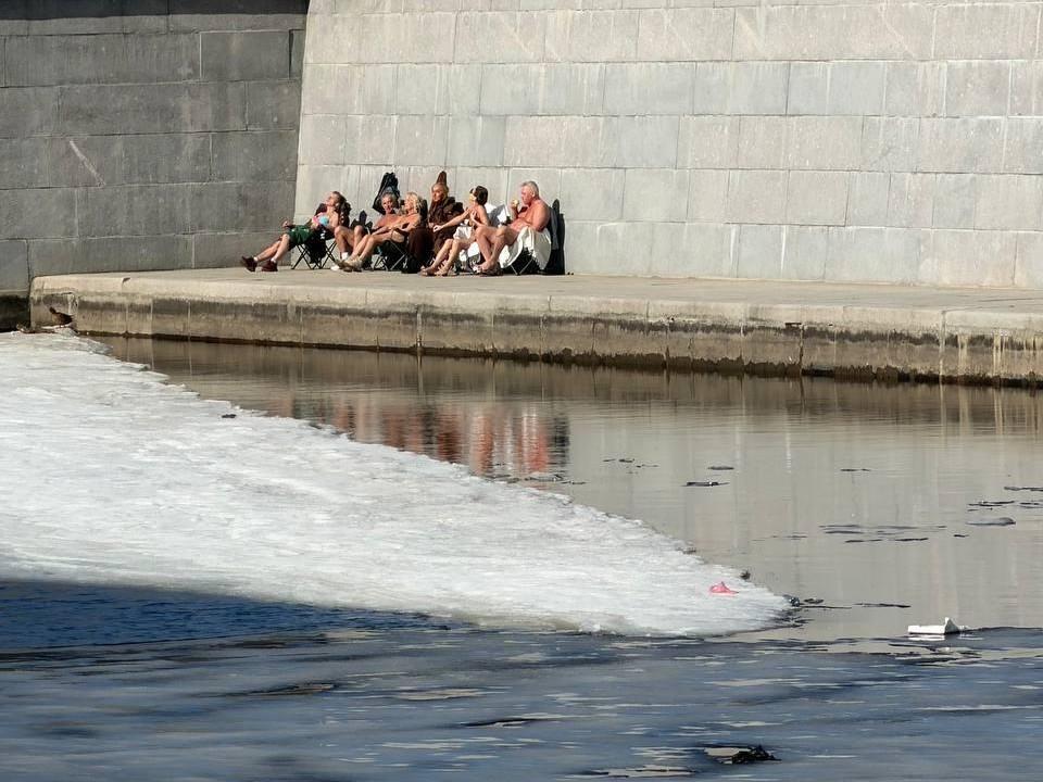 Нева практически полностью освободилась ото льда, что привлекло не только любителей солнца, но и рыбаков, открывающих новый сезон.