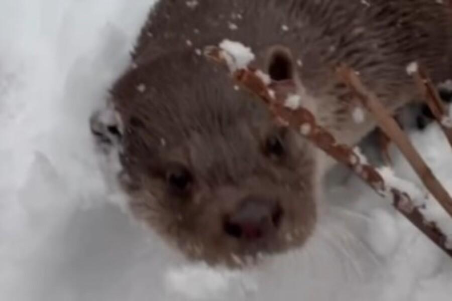 Сотрудники зоопарка пояснили, что пушистый снег превратил вольер в отличную площадку для развлечений. Выдры с энтузиазмом отыскивают лакомства, спрятанные зоологом в снежных сугробах. Кроме того, они обожают кататься на животе с ледяных горок и с любопытством закапываться мордочками в мягкий снежный покров.